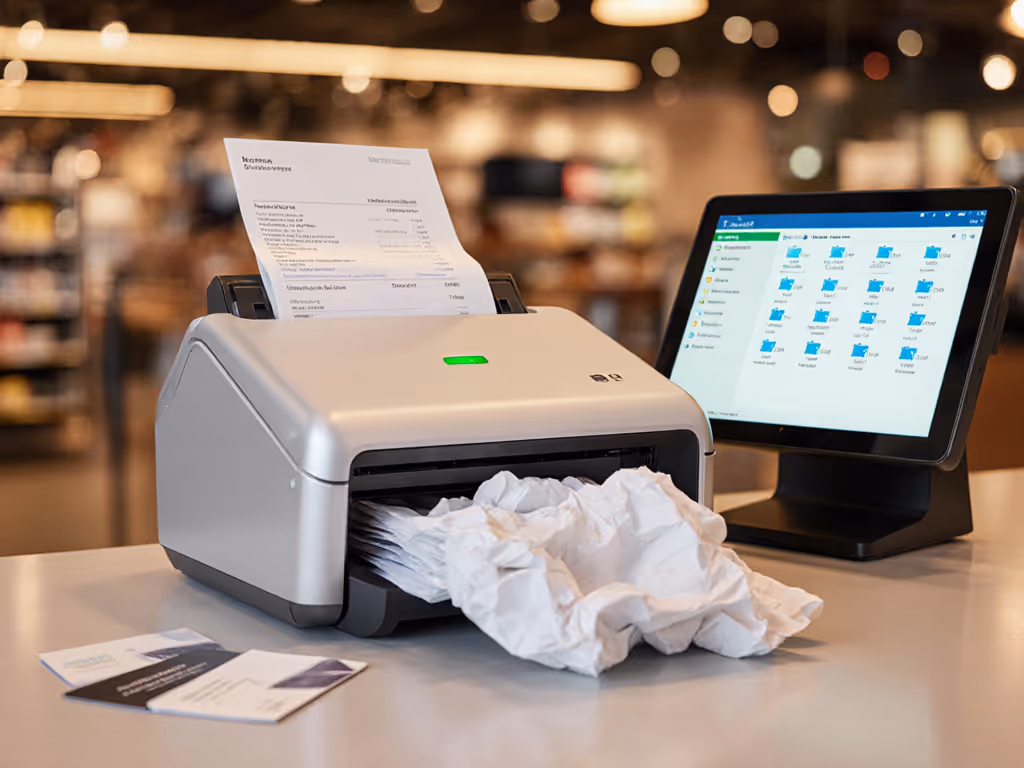 Let's talk about what happens when your retail document scanners can't keep pace with your point-of-sale reality. You've got receipts piling up beside the register, inventory sheets crumpled in drawer corners, and client intake packets threatening to avalanche off the desk. It's not the scanning hardware failing you (it's the workflow behind it). When your POS scanning solutions demand constant babysitting, what should take minutes becomes Monday morning's apology ritual. Today, we'll fix that with low-friction systems that turn document chaos into searchable, filed order (effortlessly). Because if it's fiddly, it won't survive Monday morning.